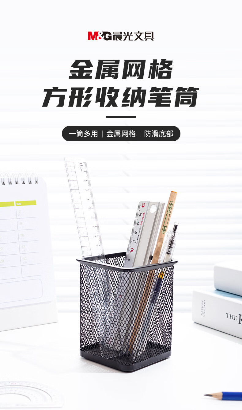 晨光金属时尚网格方形笔筒 桌面收纳盒 黑色 单个装ABT98402